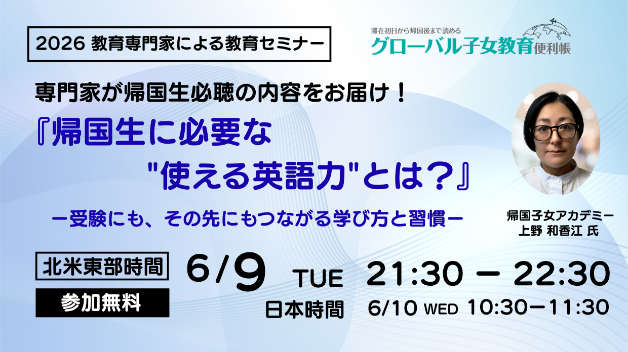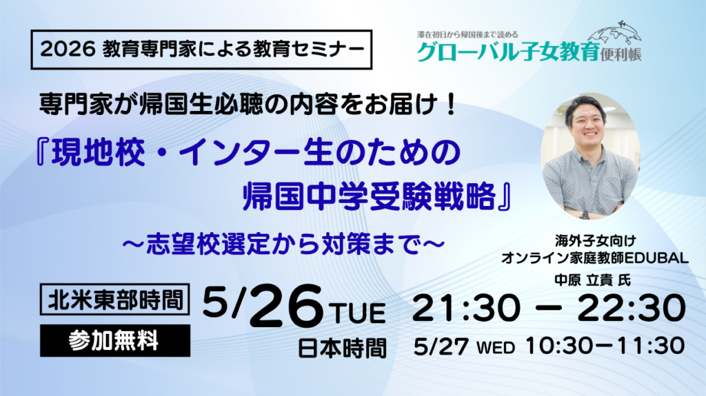 【2026年度春 教育セミナー】『現地校・インター生のための帰国中学受験戦略~志望校選定から対策まで~』EDUBAL