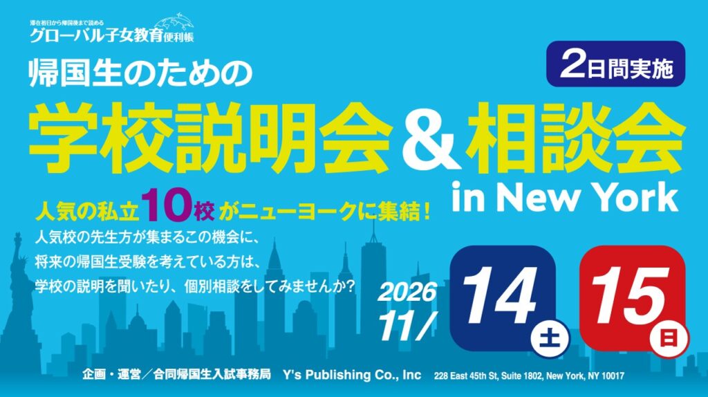 2025年11月に行われた「第2回 ニューヨーク合同帰国生入試」と「学校説明会&相談会」の様子は以下のページからご覧いただけます。
