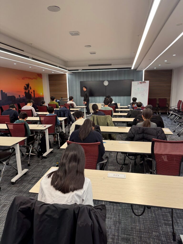 2日間にわたり開催された合同入試。今回の受験では、 全米はもちろん、さらにはメキシコやブラジルからも受験生が参加し、 時差の影響が少ない現地受験のメリットを実感できる場となりました。会場には 緊張感のある真剣な面持ちの受験生が集まり、受付から試験開始までスムーズに 進行しました。現地で受験できることで負担が少なく、受験生は集中して試験に臨まれていました。