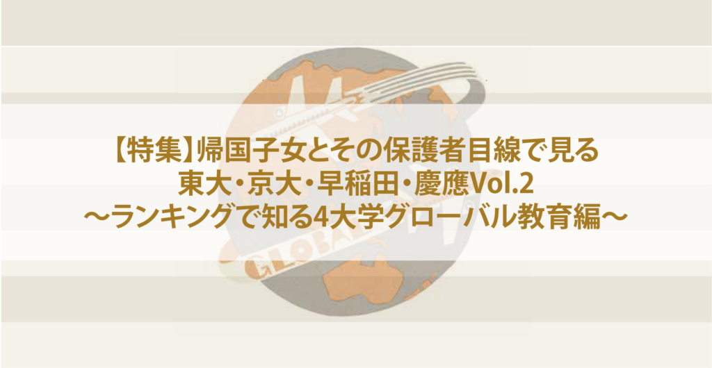【特集】帰国子女とその保護者目線で見る東大・京大・早稲田・慶應Vol.2~ランキングで知る4大学グローバル教育編~