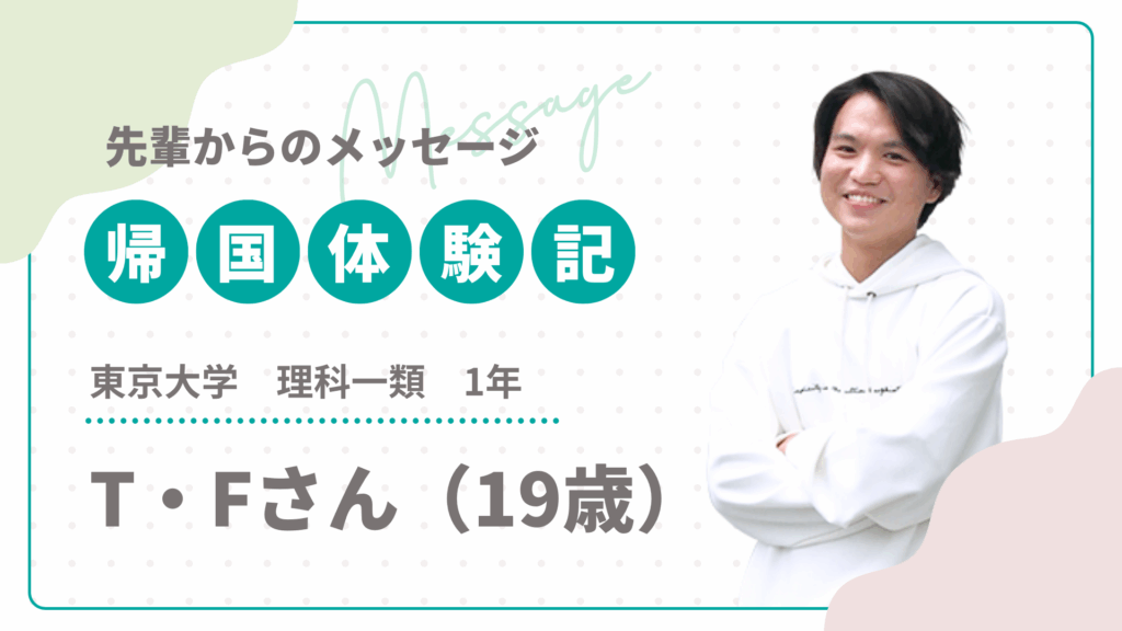 東京大学 理科一類|帰国生の先輩からのメッセージ T・Fさん(19歳)