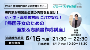 【2026年度春 教育セミナー】『小・中・高受験対応 これで安心!帰国子女のための面接&志願書作成講座』京進