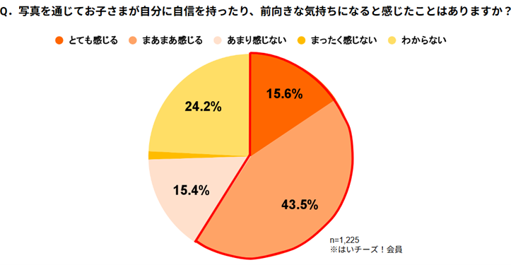 一方で、写真を通じて「子どもが自分に自信を持ったり、前向きな気持ちになる」と感じたことがある保護者は59.1%にのぼりました。子どもが写真を見返したときに「笑顔が増える」「楽しかった出来事を具体的に話すようになる」などの、良い変化を実感している人が多い結果となりました。