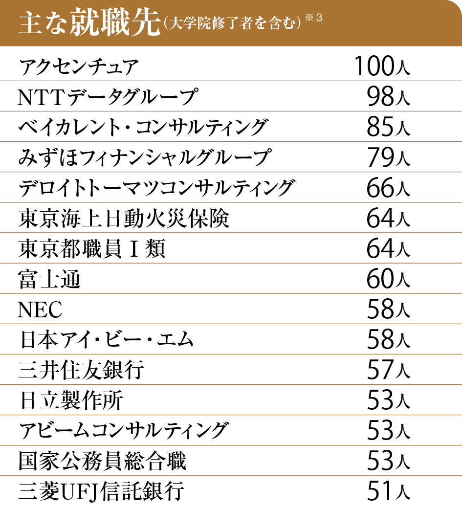※1・・・文部科学省「令和7年度国公立大学入学者選抜確定志願状況」(2025年度) ※3・・・大学通信「大学ごとの主な就職先」(2024年。大学により一部の学部・研究科を含まない場合がある。就職先名称は原則としてアンケート調査時点の各大学の回答による。)