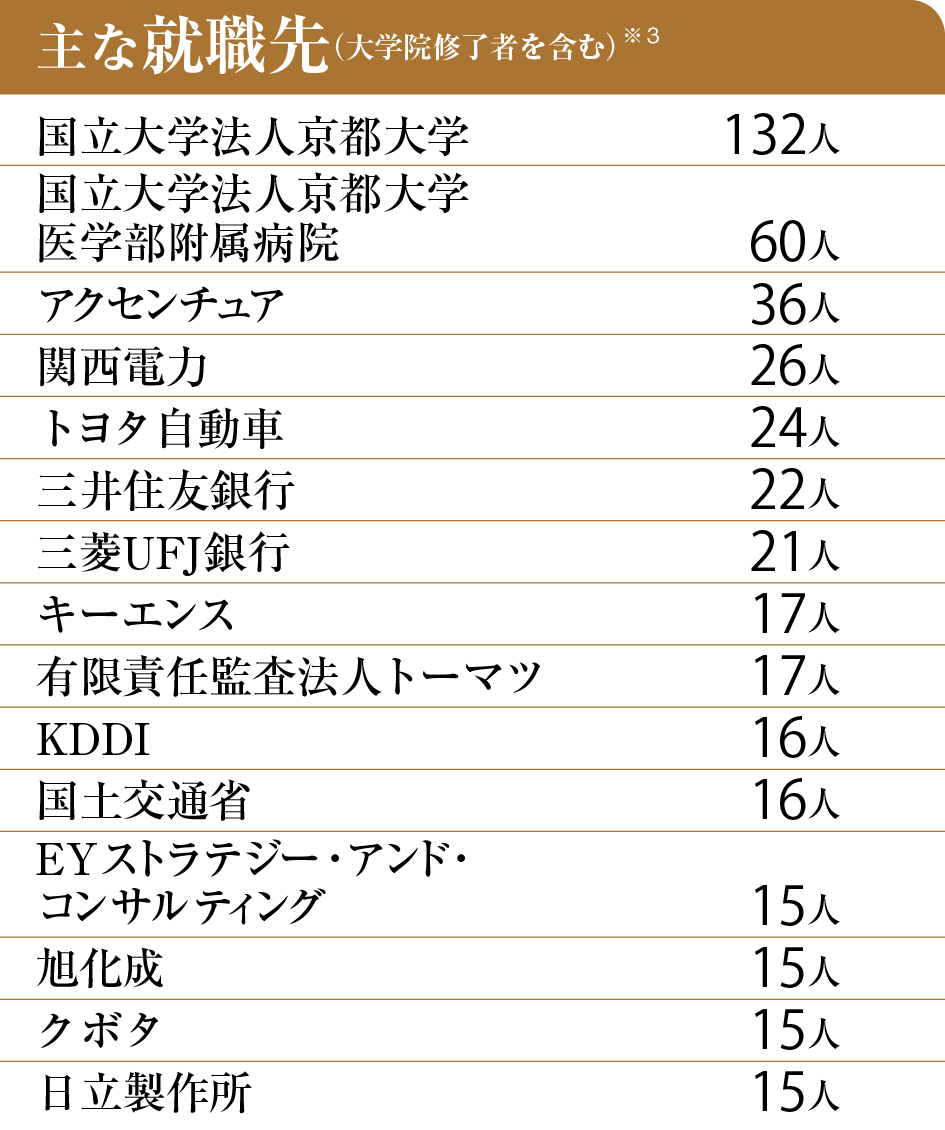 ※1・・・文部科学省「令和7年度国公立大学入学者選抜確定志願状況」(2025年度) ※3・・・大学通信「大学ごとの主な就職先」(2024年。大学により一部の学部・研究科を含まない場合がある。就職先名称は原則としてアンケート調査時点の各大学の回答による。)