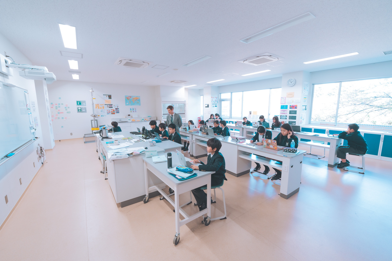 多国籍の教員陣は全員英語を共通言語とし、IB教員資格や高度な専門学位を保持。日本語科目を除く全授業を英語で実施。