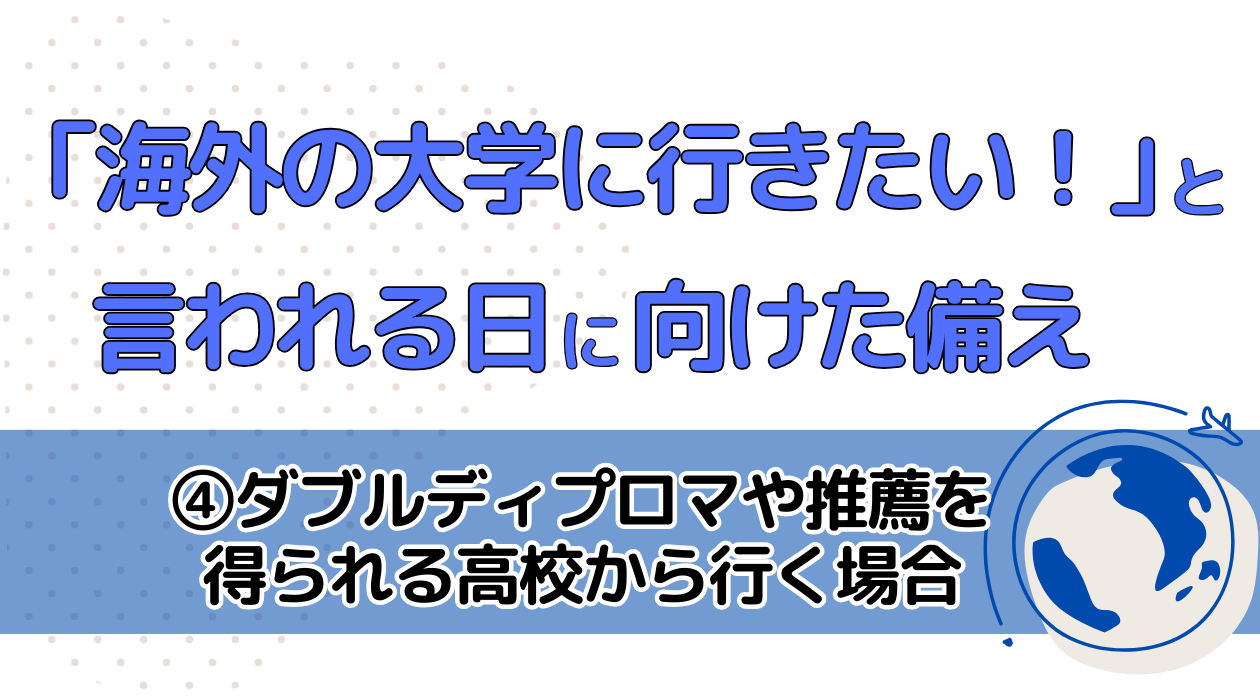 特集|「海外の大学に行きたい!」と言われる日に向けた備え|④ダブルディプロマ資格や推薦を得られる高校から行く場合