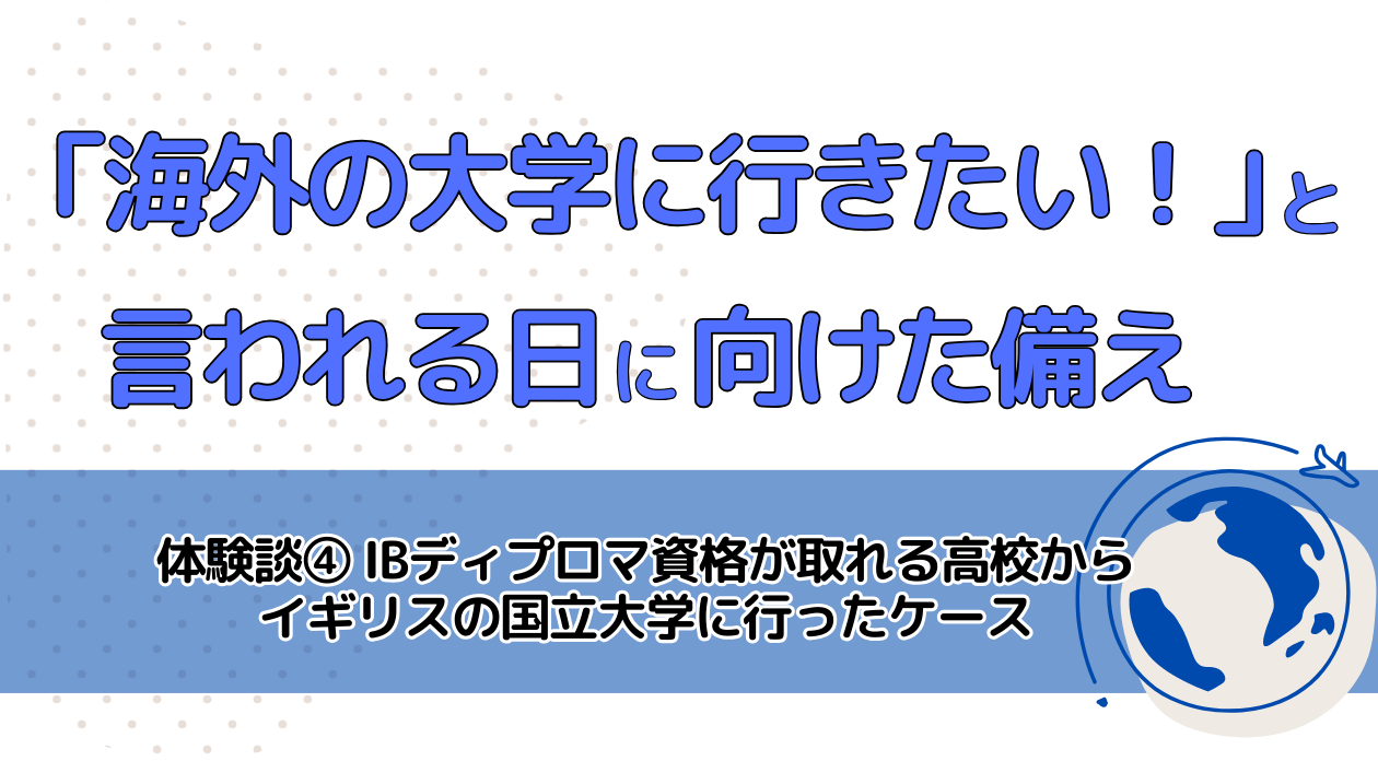 特集|「海外の大学に行きたい!」と言われる日に向けた備え|体験談4 IBディプロマ資格が取れる高校からイギリスの国立大学に行ったケース