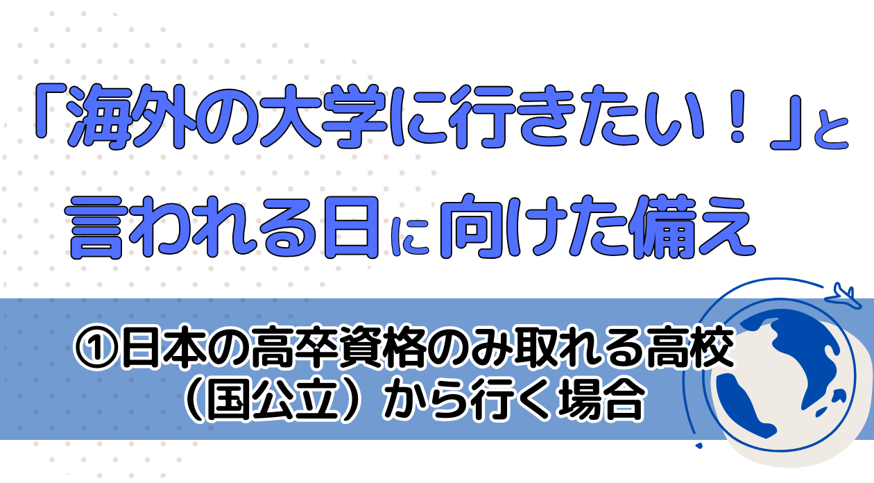 特集|「海外の大学に行きたい!」と言われる日に向けた備え|①日本の高卒資格のみ取れる高校(国公立)から行く場合