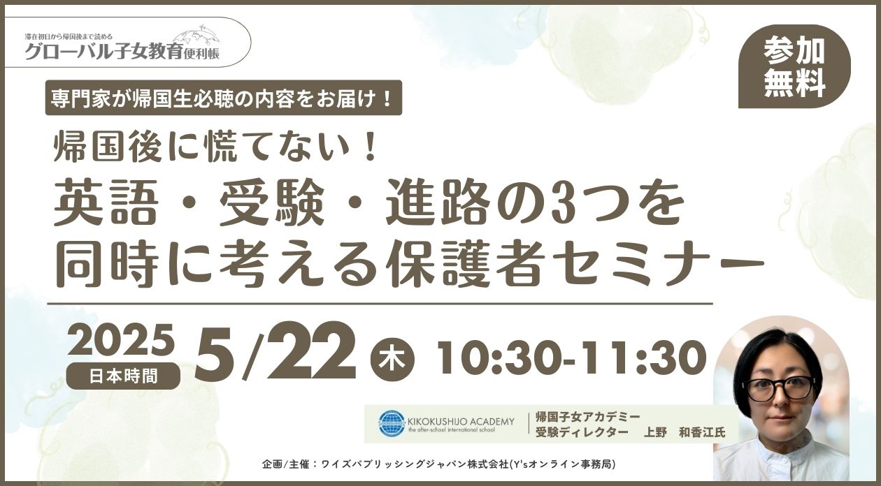 【2025年度 プロ講師による教育セミナー】『帰国後に慌てない!英語・受験・進路の3つを同時に考える保護者セミナー』帰国子女アカデミー